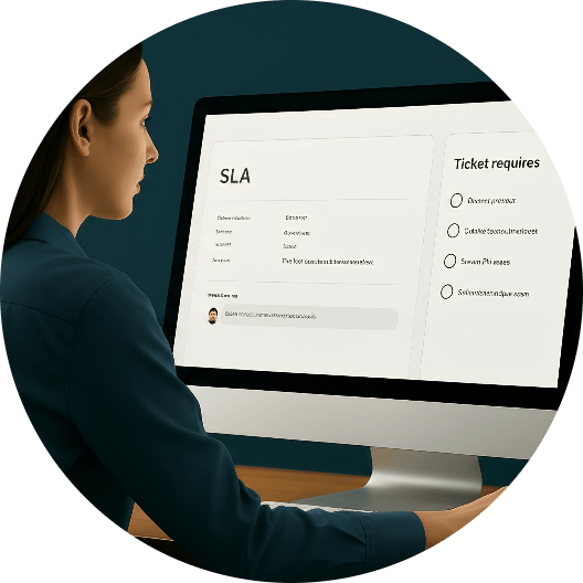 A QSR facing challenges in reporitng issues from a single source, whether it’s equipment, supplier, or IT problems.  With we:help the right team is notified with clear ownership. Service level agreements, scheduling, and dashboards track every ticket, so nothing is ignored and managers can monitor performance. This eliminates guesswork and recurring firefighting, keeping operations focused on service and efficiency.