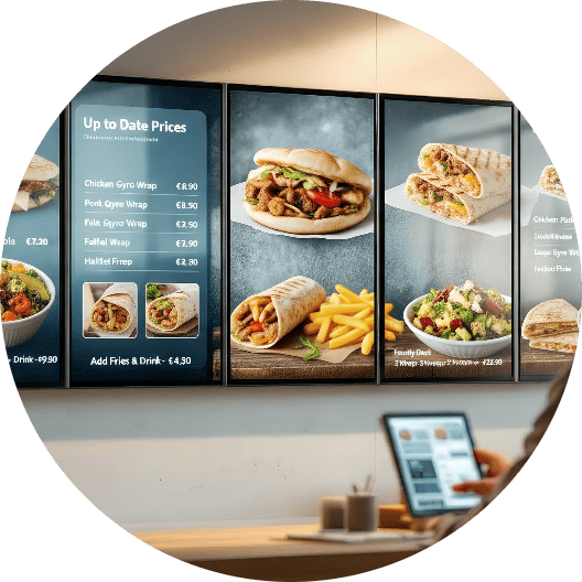 QSRs can face challenges with outdated menu boards, where promotions aren’t updated at kiosks, leading to customers ordering items that are no longer available. This causes long apologies, refunds, and walkaways. With we:sign, the operator updates promotions centrally. Within weeks, order accuracy improves and average order value increases thanks to consistent upsell prompts.